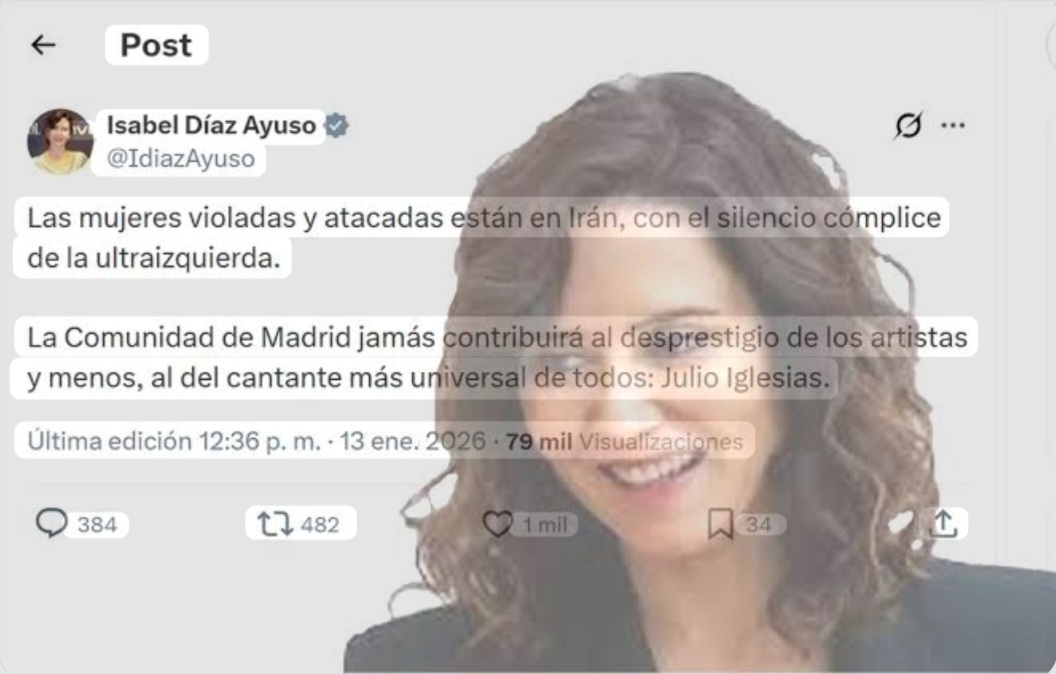En este contexto, la reacción de Isabel Díaz Ayuso ha sido presentada como escandalosa. Al rechazar retirar honores y afirmar que “las mujeres violadas y atacadas están en Irán”, Ayuso introduce un contramarco: el de la instrumentalización ideológica del caso y la defensa del prestigio cultural.